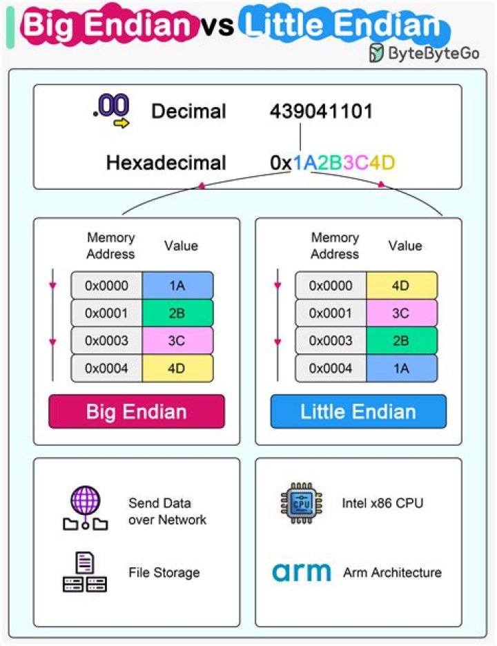 One thing that is often overlooked is the formatting at the byte level of this data. ... Specifically, little-endian is when the least significant bytes are stored before the more significant bytes, and big-endian is when the most significant bytes are stored before the less significant bytes.
