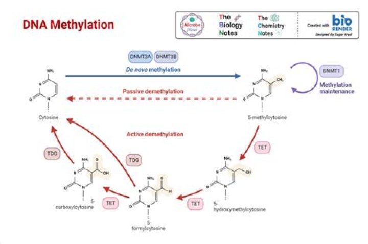 Today, researchers know that DNA methylation occurs at the cytosine bases of eukaryotic DNA, which are converted to 5-methylcytosine by DNA methyltransferase (DNMT) enzymes.
