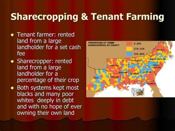 After the Civil War, thousands of former slaves and white farmers forced off their land by the bad economy lacked the money to purchase the farmland, seeds, livestock, and equipment they needed to begin farming. ... They became tenant farmers and sharecroppers.
