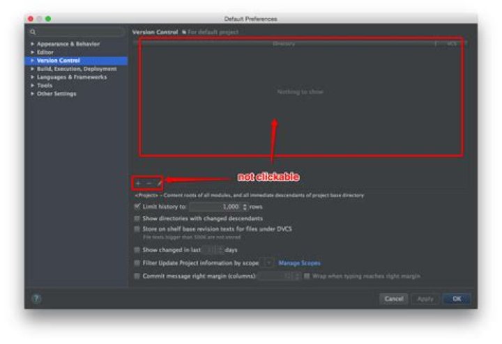 2. The Version Control page shows a list of project directories and version control systems associated with them (if no directories have been added, the list only contains the project root).