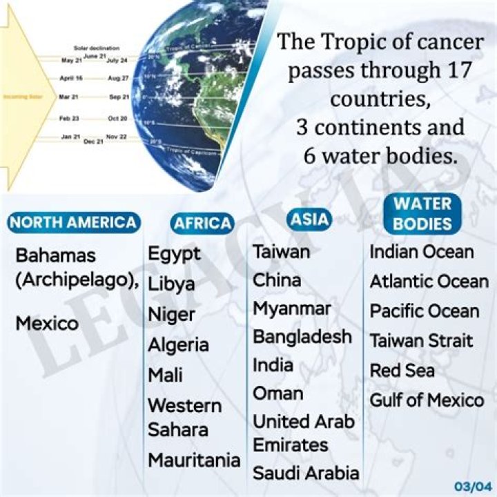 Countries Through which Tropic of Cancer is Passing
