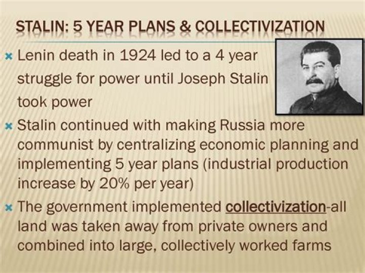 As part of the first five-year plan, collectivization was introduced in the Soviet Union by general secretary Joseph Stalin in the late 1920s as a way, according to the policies of socialist leaders, to boost agricultural production through the organization of land and labor into large-scale collective farms (kolkhozy) ...